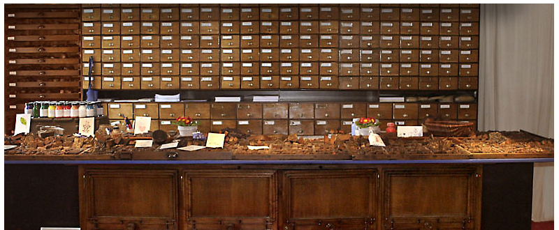 Ca. 2300 unterschiedliche handgestochene Modeln (Stoffdruckstöcke) in edlen harten Hölzern nach alten Originalen aus Blaufärbereien, aus vielen Zeiten und Kulturen, und nach Blauweißchens eigenen Entwürfen.